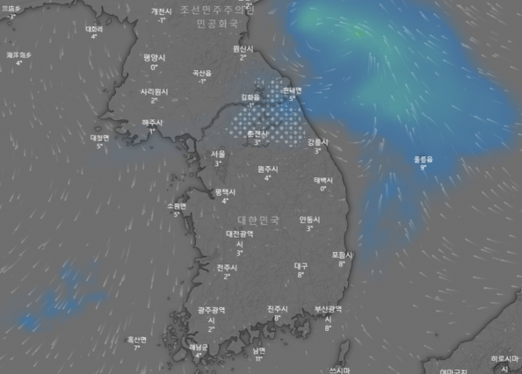 [Windy.com] 오늘 춘천시에 눈이 온다면 내일도 눈이 올 확률은 어느 정도일까?