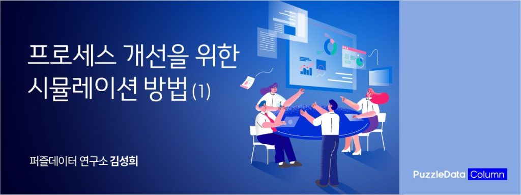 프로세스 개선을 위해 왜 시뮬레이션을 해야 할까요? 현실에서 프로세스 내 업무 흐름이나 자원의 구성을 바꾸기는 쉽지 않습니다. 예를 들어, 병원에서 의사를 한 명 고용했을 때 환자의 대기시간 감소에 얼마나 영향일 미칠 것인지 쉽게 알기 어렵습니다. 현실에서는 고용을 위한 준비와 절차, 그리고 결과가 나올 때까지 기다려야만 효과를 알 수 있습니다. 즉, 상당한 비용과 시간이 소요됩니다. 반면에, 가상 세계에서는 상대적으로 적은 비용과 시간으로 의사 고용에 대한 효과를 확인해 볼 수 있습니다. 그렇다면 어떻게 프로세스 시뮬레이션을 할 수 있을까요? [그림1]을 보면서 하나씩 알아보도록 하겠습니다.