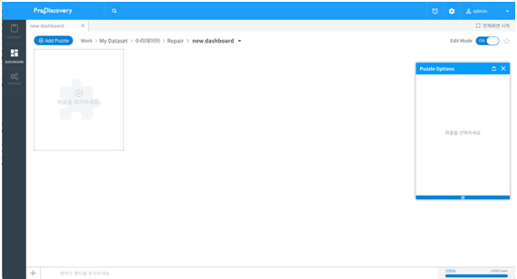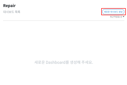 새로운 대시보드 생성 버튼을 누르면 대시보드가 새로 생성되며 바로 대시보드 화면으로 이동됩니다.