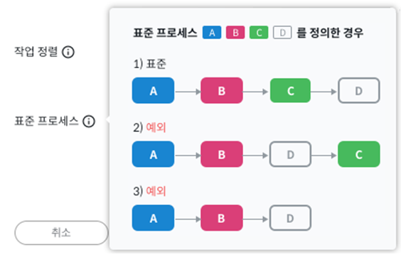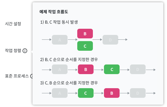 그 외에도 동일한 시간에 발생한 이벤트의 순서를 지정하는 작업 정렬과 표준 프로세스를 지정해 일치 여부를 진단하는 설정 등을 할 수 있습니다.
