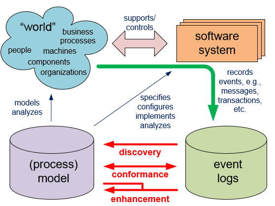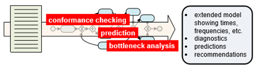 프로세스 모델과 이벤트 로그의 관계를 통해 수행할 수 있는 작업은 3가지가 있습니다.