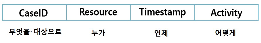 참고 링크 : 프로세스 마이닝 분석을 위한 데이터 요소, https://blog.naver.com/prodiscovery/221058539389)