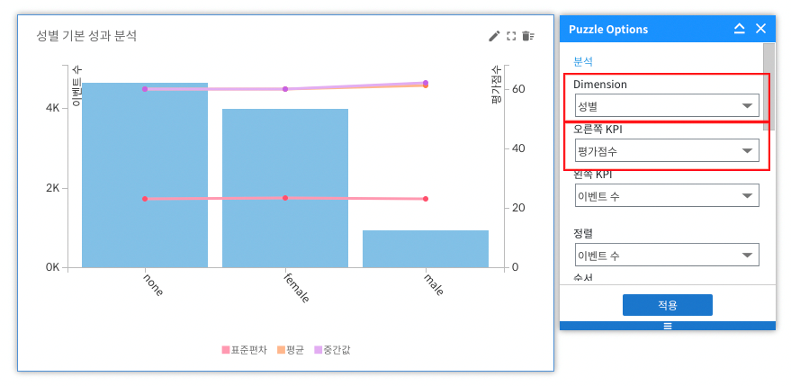 추가 컬럼을 통해 분석이 가능한 퍼즐인 경우에 다음 아래 이미지처럼 퍼즐 옵션에 나타나게 됩니다.