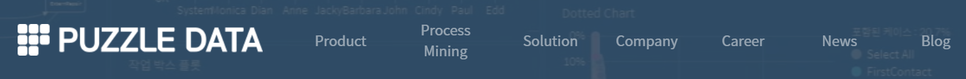현 퍼즐데이터 홈페이지의 상단 메뉴입니다.