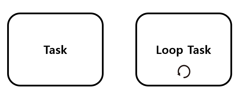 Loop-Task : 하단에 Loop 아이콘이 포함된 Task는 반복적으로 작업이 진행될 수 있다는 의미를 포함하고 있습니다.