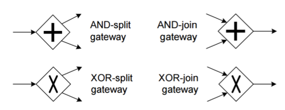 XOR-split gateway : split 시점에서 다음(next) 이어질 2개 이상의 업무 중 하나의 업무로 연결이 이어짐을 뜻합니다.
