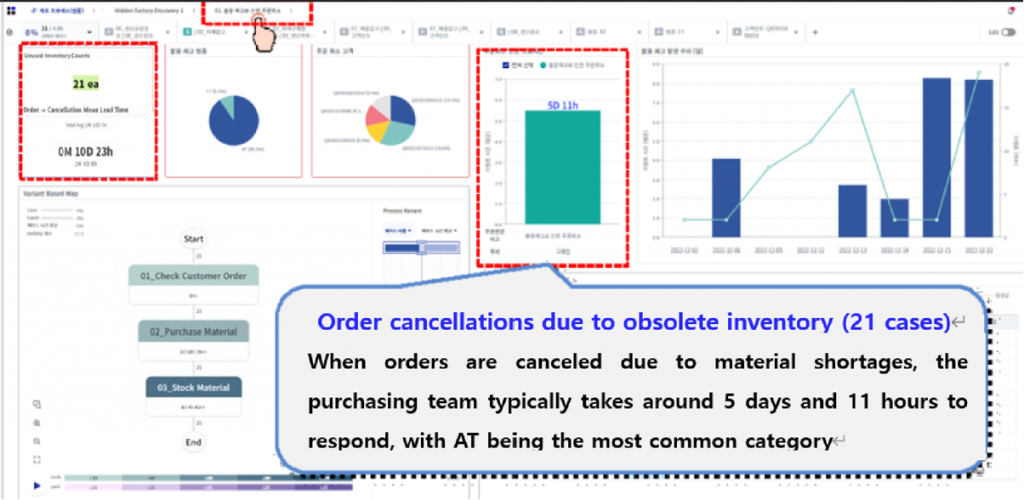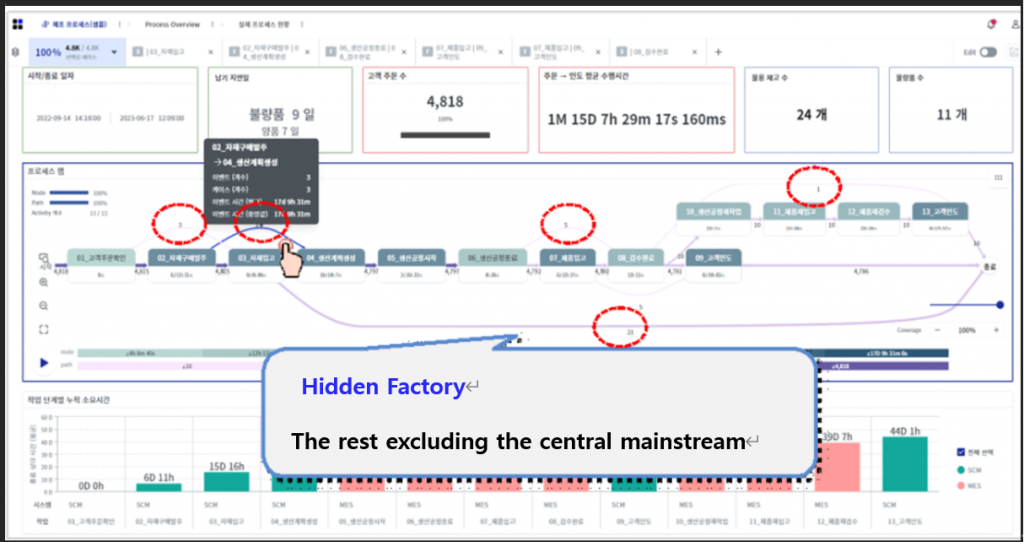 When analyzing business processes through process mining, we often encounter “hidden processes” that are not documented in process definitions. This phenomenon is not limited to manufacturing companies; it also occurs in various industries. In the manufacturing context, these hidden processes are referred to as “Hidden Factories.” Hidden Factories are challenging to identify accurately, and they adversely affect production efficiency while increasing costs. Therefore, they must be promptly addressed and resolved.
