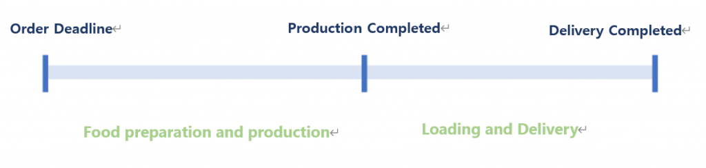 Why is the live cooking corner in buffets so popular? The answer lies in the graph. Three key moments almost happen simultaneously. First, there is no time gap between production completion and delivery completion since the food goes straight to the table when it’s ready. Second, there’s no order deadline. Chefs accommodate customer requests on the spot. This principle is a common concern for every company in the real world with customers.