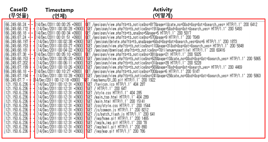 1) 일반 웹 서버 로그 파일 프로세스 마이닝 로그 사례