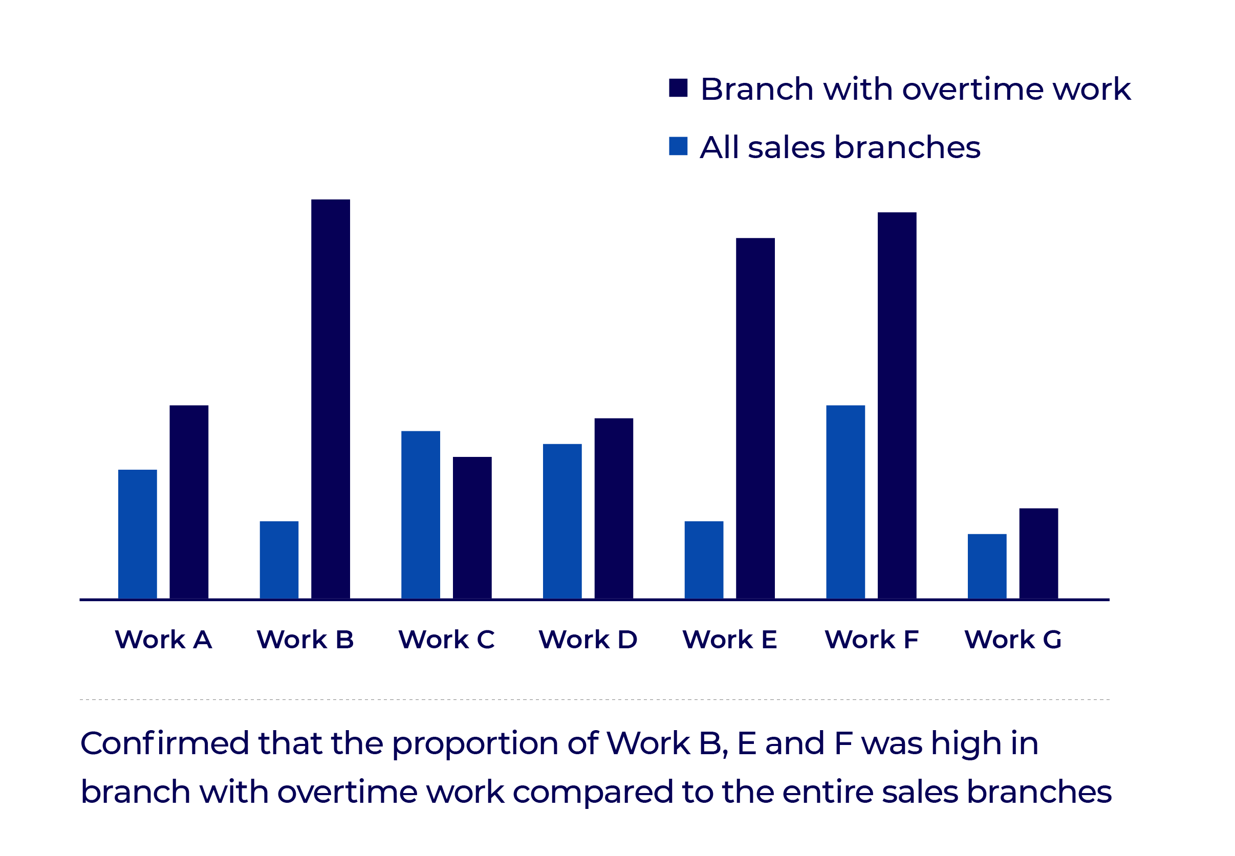 - 33% of work that takes up a high proportion in the branches with overtime work was repetitive work