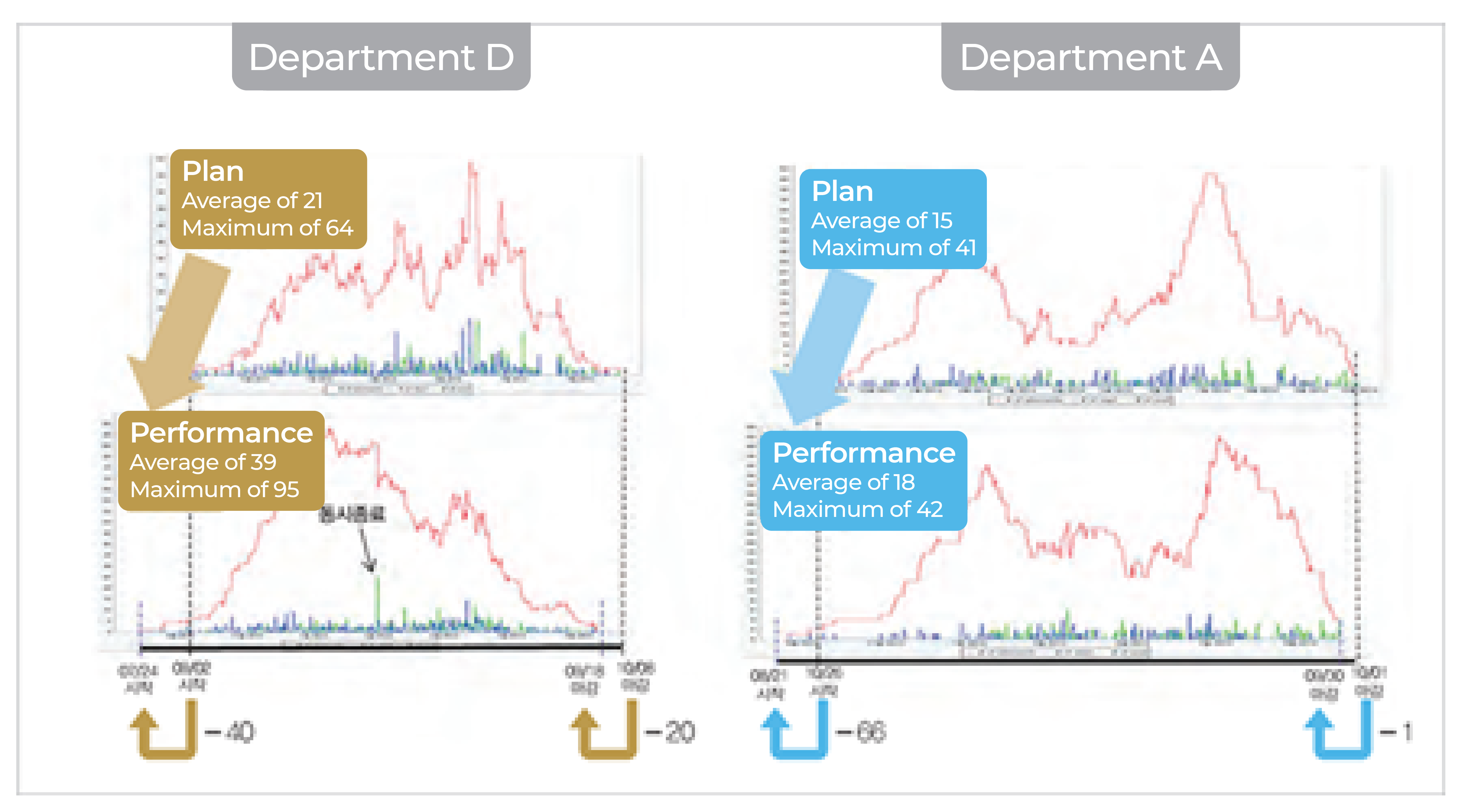 - Prediction of process load by department through comparative analysis of plan and performance data