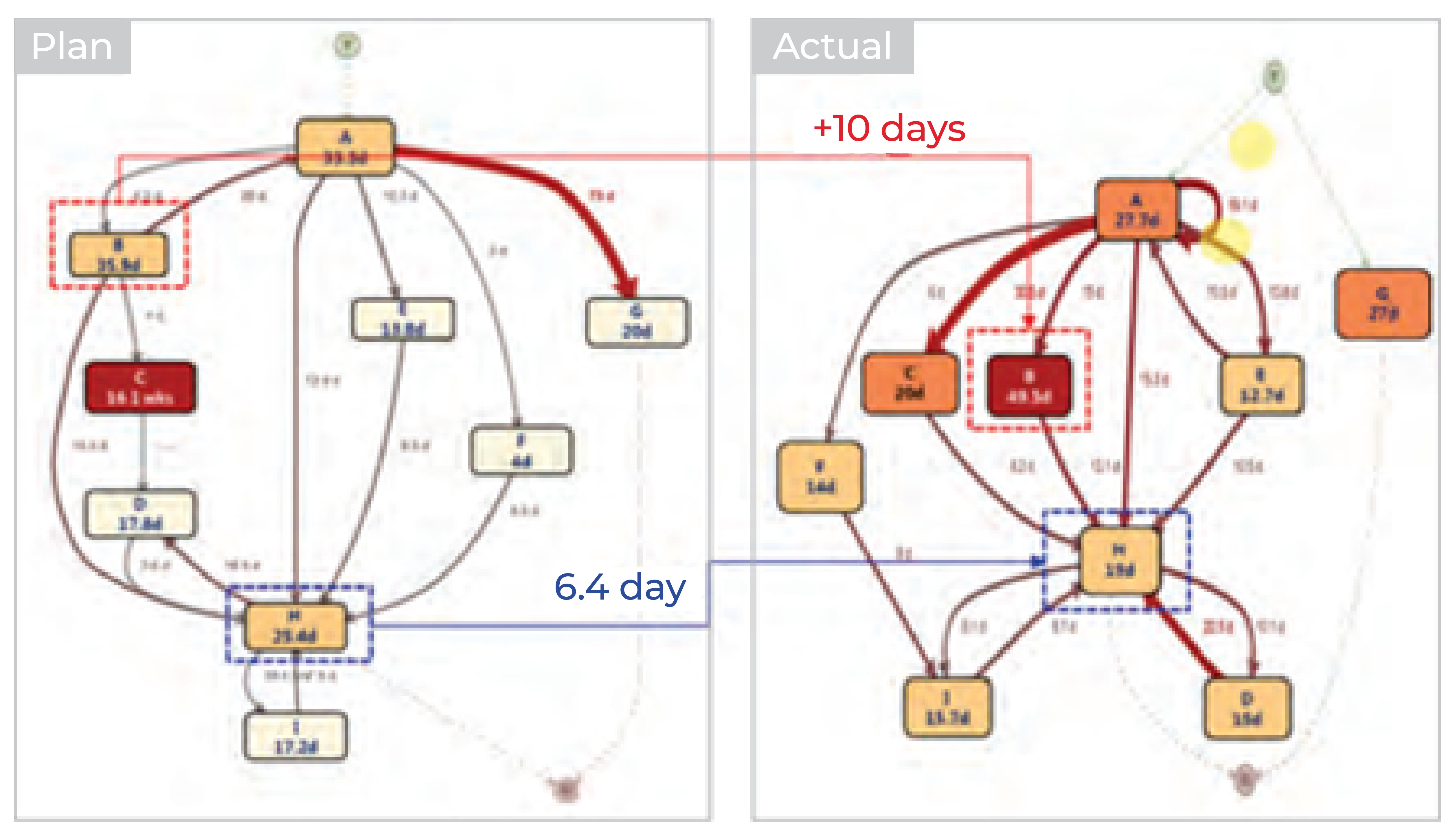 Comparison of delay parameter by item (case/department/process) through comparative analysis of plan and performance