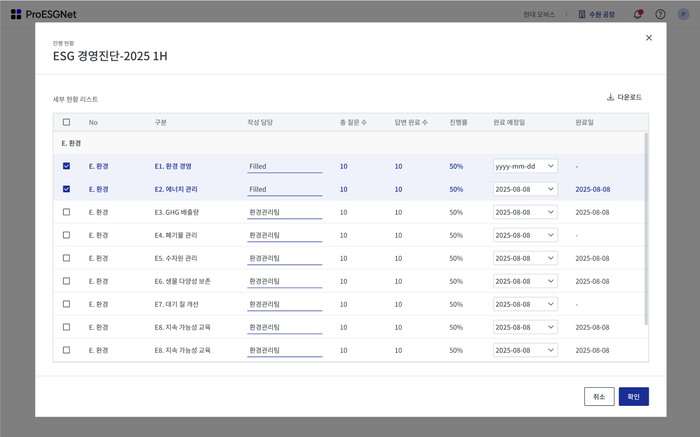 - 환경 데이터는 시설관리팀, 사회 데이터는 인사팀, 지배구조 데이터는 경영지원팀에서 각각 관리
