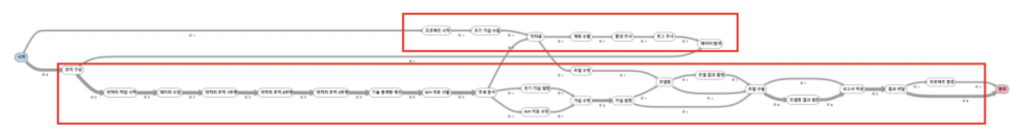 프로세스의 시작이 프로젝트 시작 Activity, 프로세스의 종료가 프로젝트 종료 Activity로 표현된 것을 확인할 수 있습니다.
