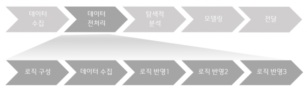 표시한 부분은 데이터 분석 프로세스에서 전처리 프로세스를 나타내는 부분입니다. 필터를 사용해서 해당 프로세스만 표현하면 아래와 같은 그림으로 나타낼 수 있습니다.